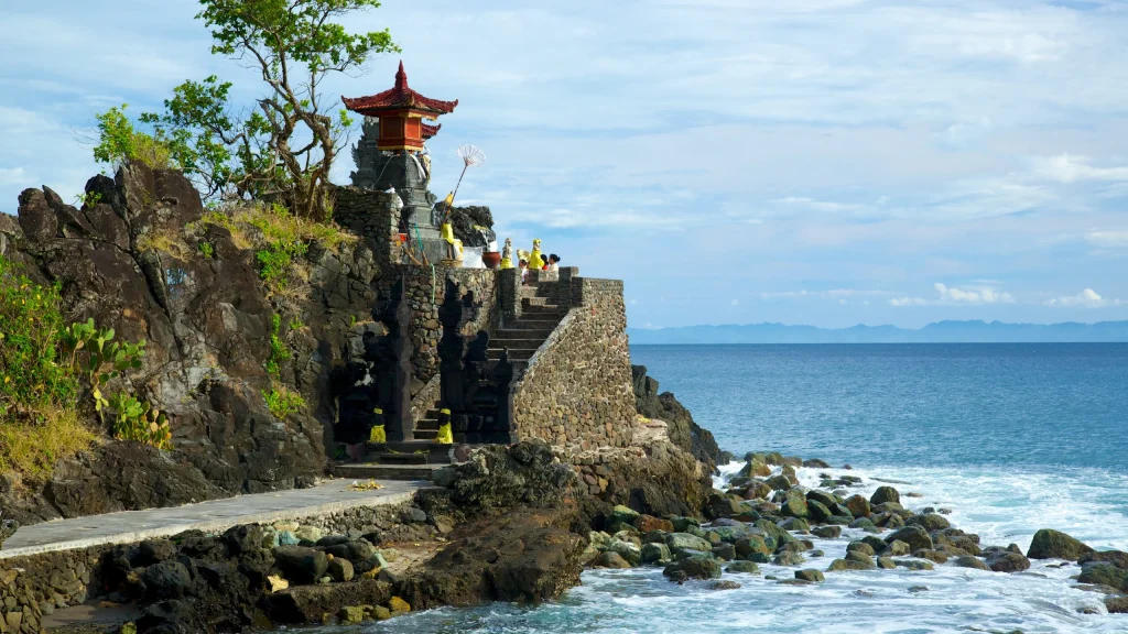 Pura Batu Bolong adalah salah satu destinasi wisata spiritual dan alam yang paling ikonik di Lombok. Terletak di tepi Pantai Senggigi, pura ini didirikan di atas batu karang besar yang menjorok langsung ke laut.