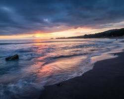 Pantai Kerandangan memancarkan pesona alam yang otentik dan menenangkan, menjadikannya permata tersembunyi yang damai di dekat kawasan Senggigi. Keindahan pantai ini terletak pada kontras antara pasir putih kecokelatan yang lembut dengan hijaunya deretan pepohonan di sepanjang garis pantai, menciptakan suasana yang lebih teduh dan asri dibandingkan pantai-pantai komersil lainnya.
